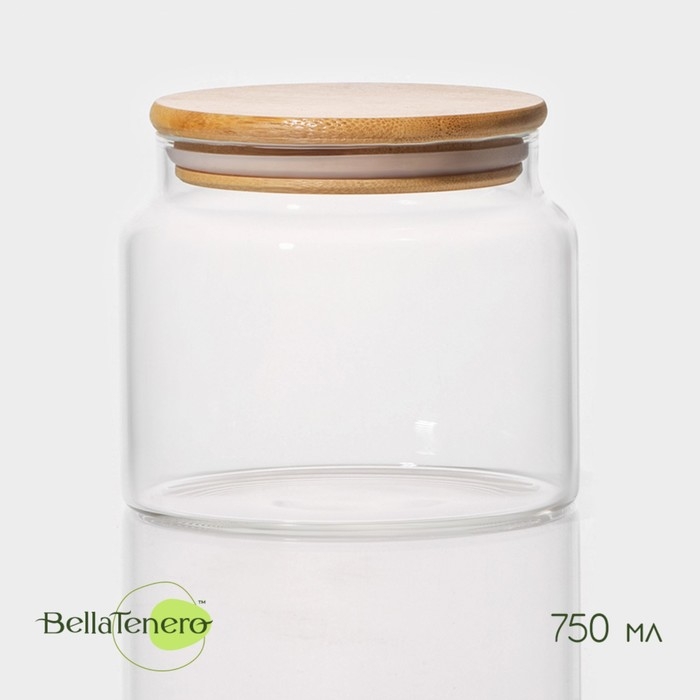 Банка стеклянная для хранения сыпучих продуктов BellaTenero «Эко», 750 мл, 12×10,5 см, с бамбуковой крышкой