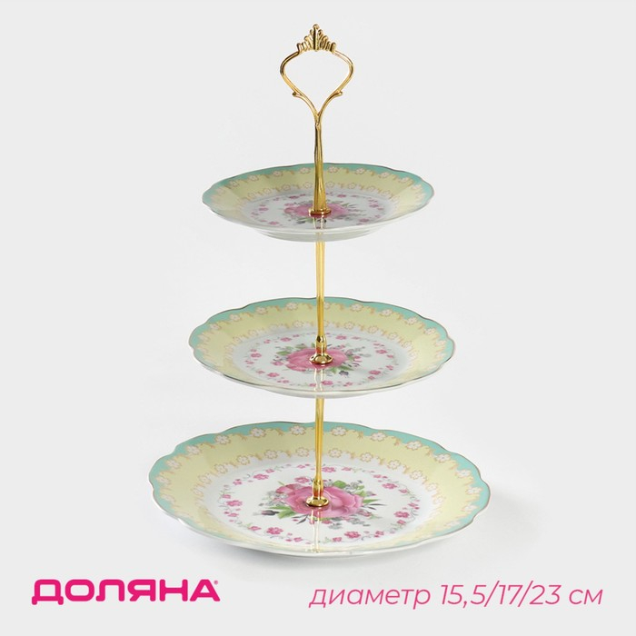 Блюдо керамическое 3-х ярусное Доляна «Цветочный вальс», d=15,5/17/23 см ㅤ