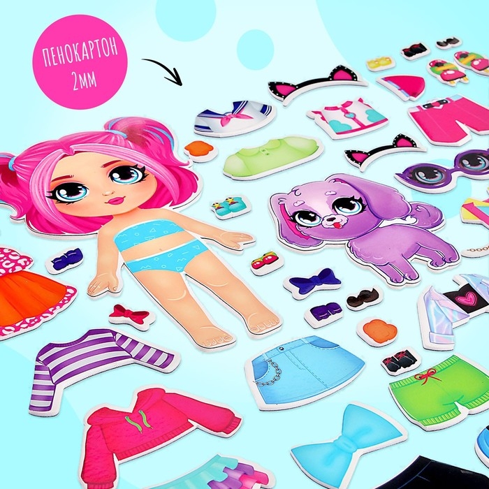 - Магнитная подложка в виде куклы высотой 21 см и питомца.