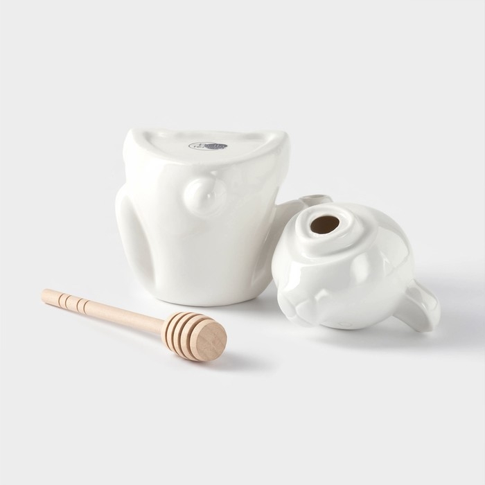 Ёмкость фарфоровая для мёда с ложкой BellaTenero, 300 мл, цвет белый