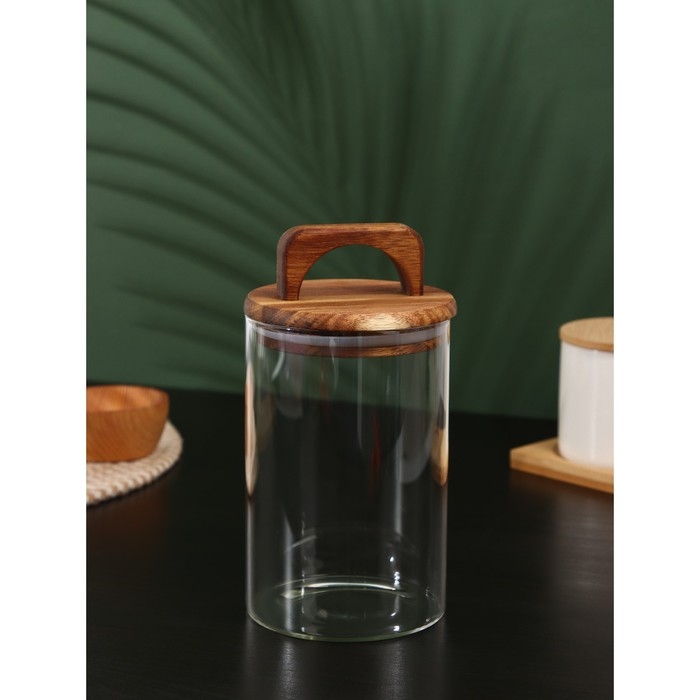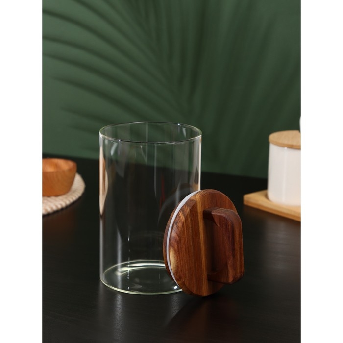 Банка стеклянная для хранения сыпучих продуктов «Вуд», 950 мл, 10×20 см, с деревянной крышкой