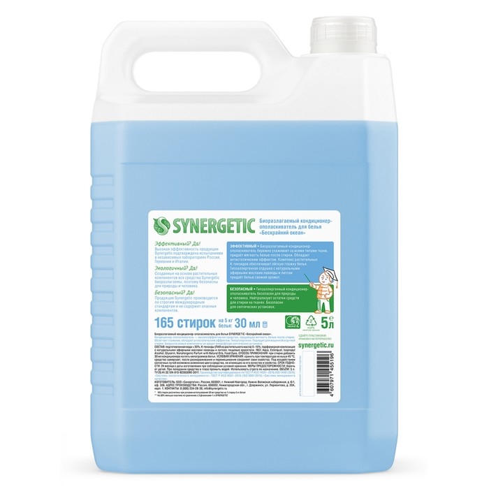 Биоразлагаемый кондиционер-ополаскиватель для белья SYNERGETIC "Бескрайний океан" – высокоэффективное средство, бережно ухаживающее за всеми типами ткани, в том числе деликатными, и придающее особую мягкость и нежность белью после стирки.