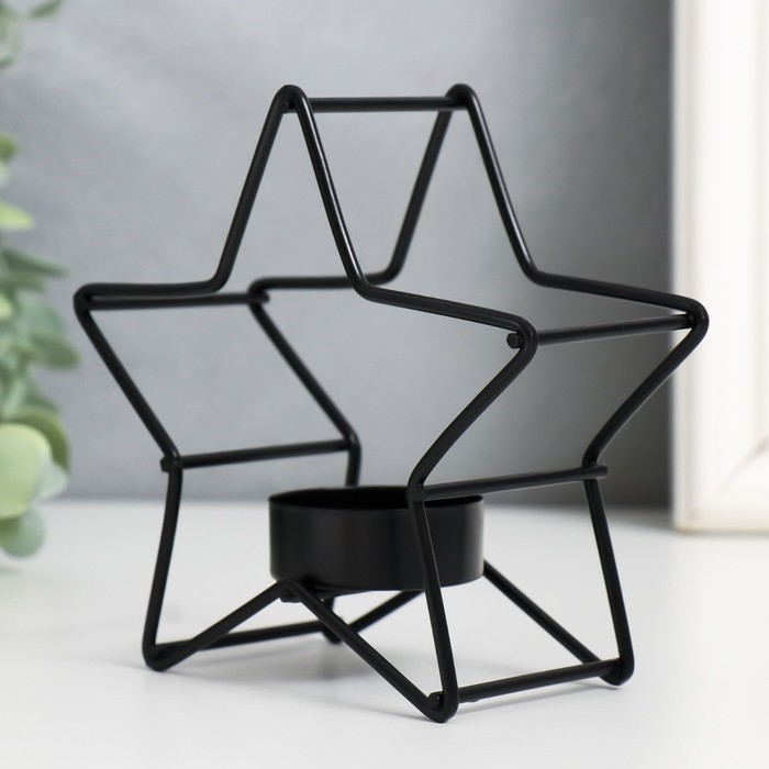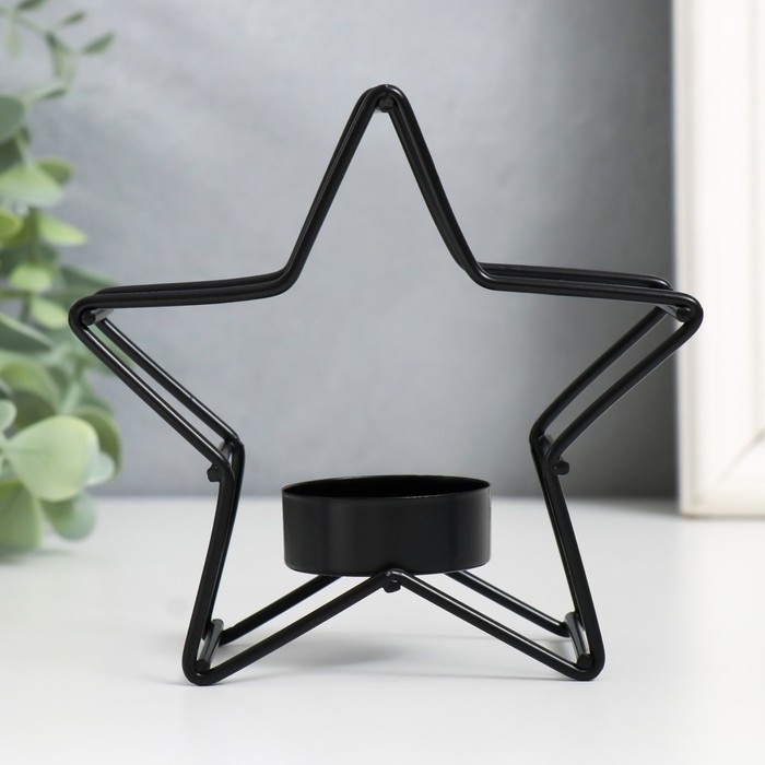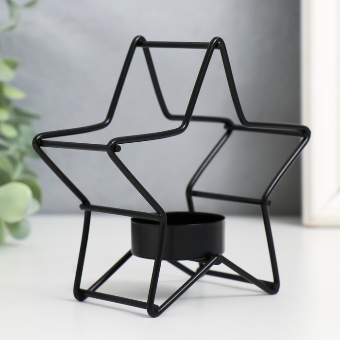 Подсвечник металл на 1 свечу "Звезда" d-3,8 см чёрный 12х5х11,8 см