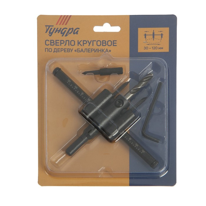 Сверло круговое регулируемое по дереву ТУНДРА "Балеринка", 30 - 120 мм