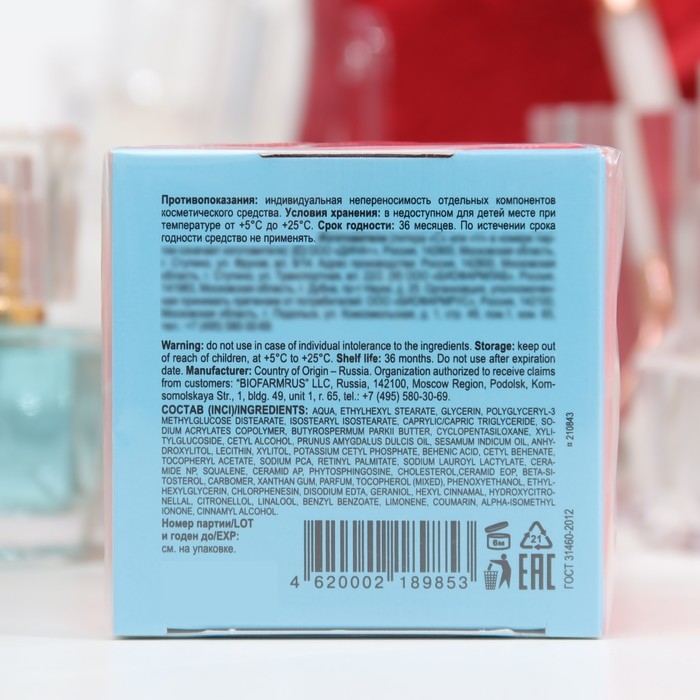 Состав: aqua, ethylhexyl stearate, glycerin, polyglyceryl-3 methylglucose distearate, isostearyl isostearate, caprylic/capric triglyceride, sodium acrylates copolymer, butyrospermum parkii butter, cyclopentasiloxane, xylitylglucoside, cetyl alcohol, prunus amygdalus dulcis oil, sesamum indicum oil, anhydroxylitol, lecithin, xylitol, potassium cetyl phosphate, behenic acid, cetyl behenate, tocopheryl acetate, sodium pca, retinyl palmitate, sodium lauroyl lactylate, ceramide np, squalene, ceramid ap, phytosphingosine, cholesterol,ceramid eop, beta-sitosterol, carbomer, xanthan gum, parfum, tocopherol (mixed), phenoxyethanol, ethylhexylglycerin, chlorphenesin, disodium edta, geraniol, hexyl cinnamal, hydroxycitronellal, citronellol, linalool, benzyl benzoate, limonene, coumarin, alpha-isomethyl ionone, cinnamyl alcohol.