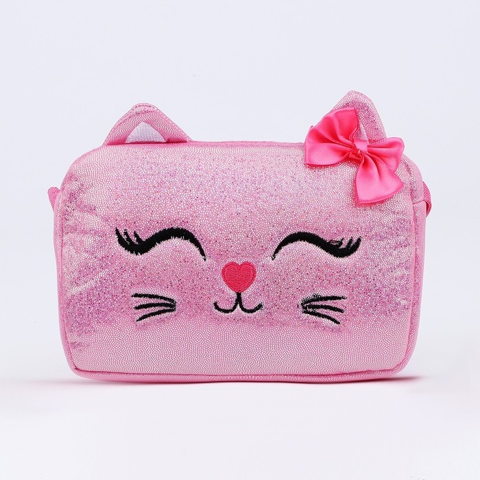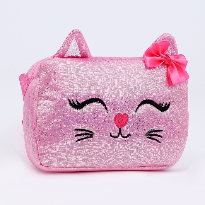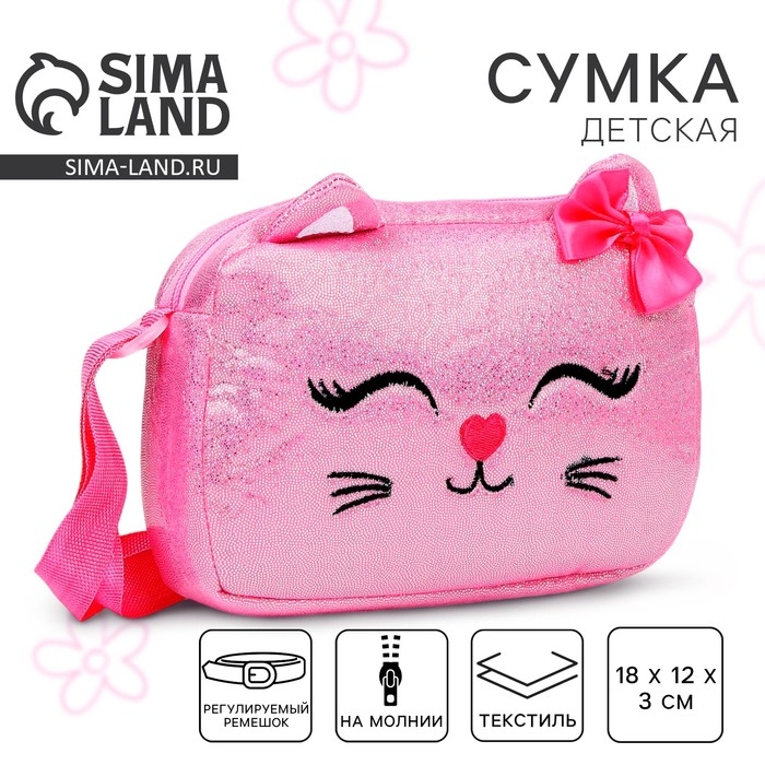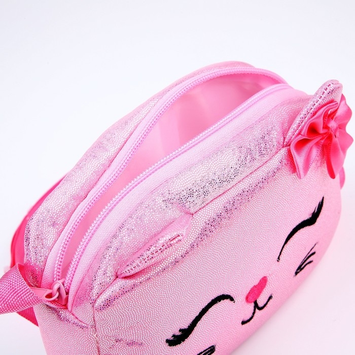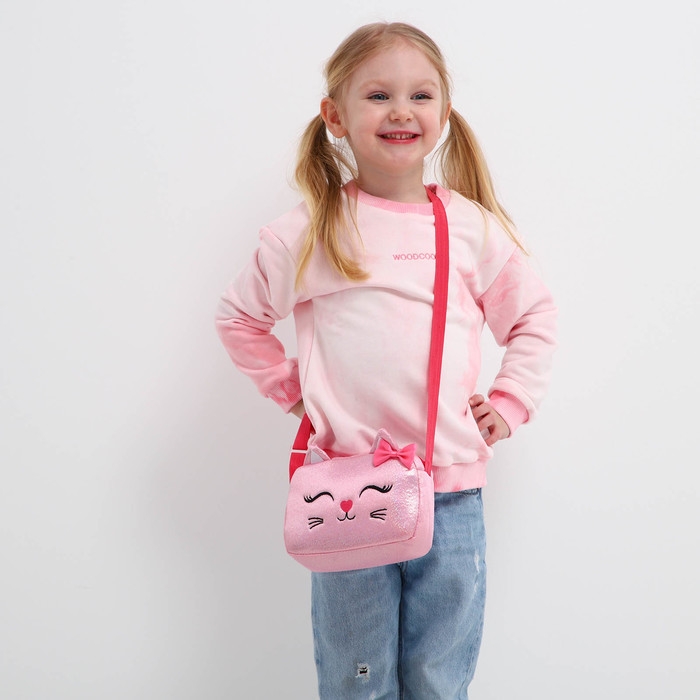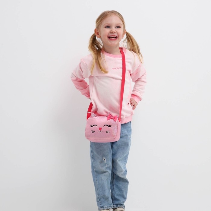 Сумка детская на молнии, длинный ремень, цвет розовый