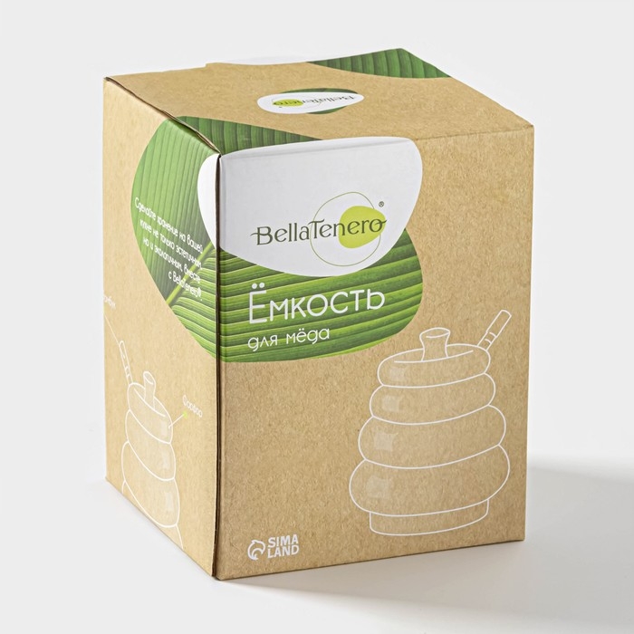 Ёмкость фарфоровая для мёда с ложкой BellaTenero, 300 мл, цвет белый
