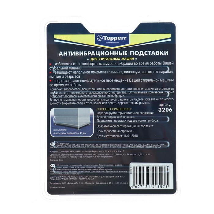 Антивибрационные амортизирующие подставки Тopperr, прозрачные, в блистере, 4 шт.