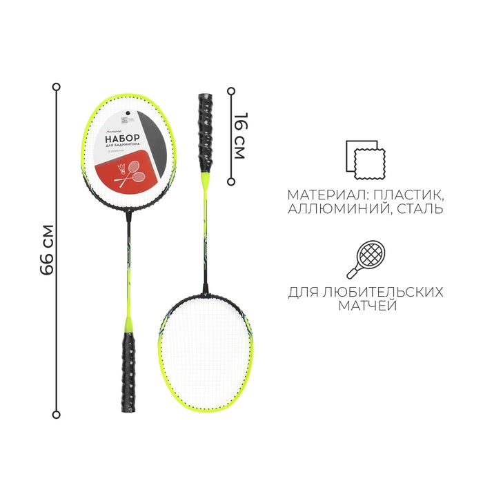 Ракетки для бадминтона ONLYTOP, набор 2 шт., в чехле, цвета МИКС