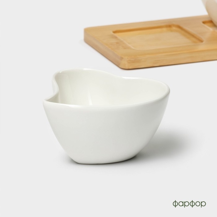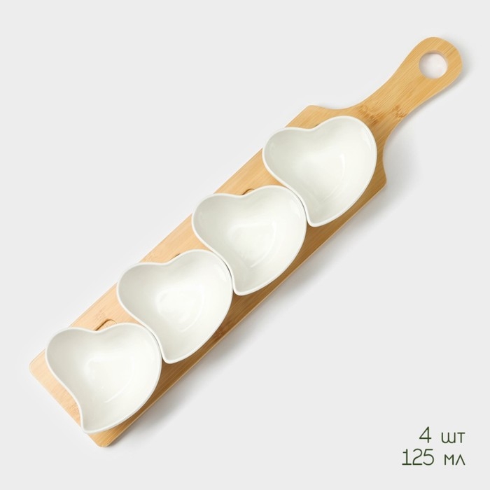 Набор соусников керамический на бамбуковой подставке BellaTenero «Сердце», 4 предмета: 125 мл, цвет белый