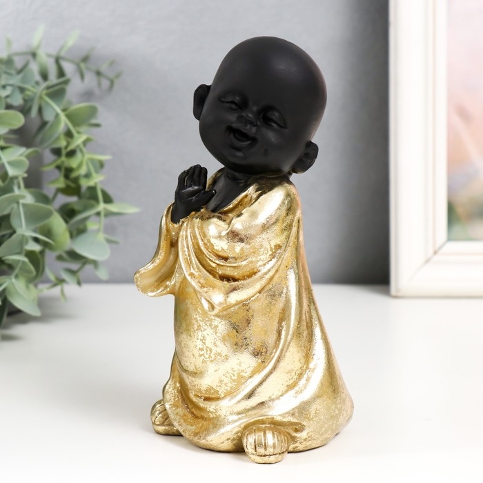 Сувенир полистоун "Маленький Будда в золотом. Веселье" МИКС 8х7,7х16,5 см