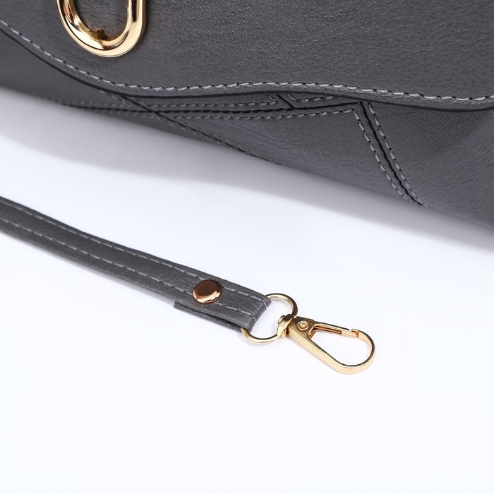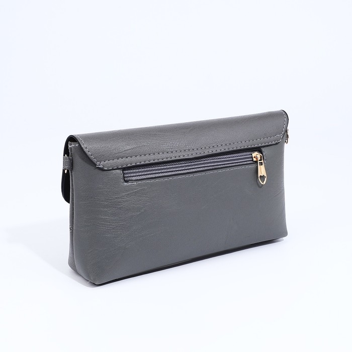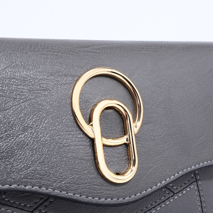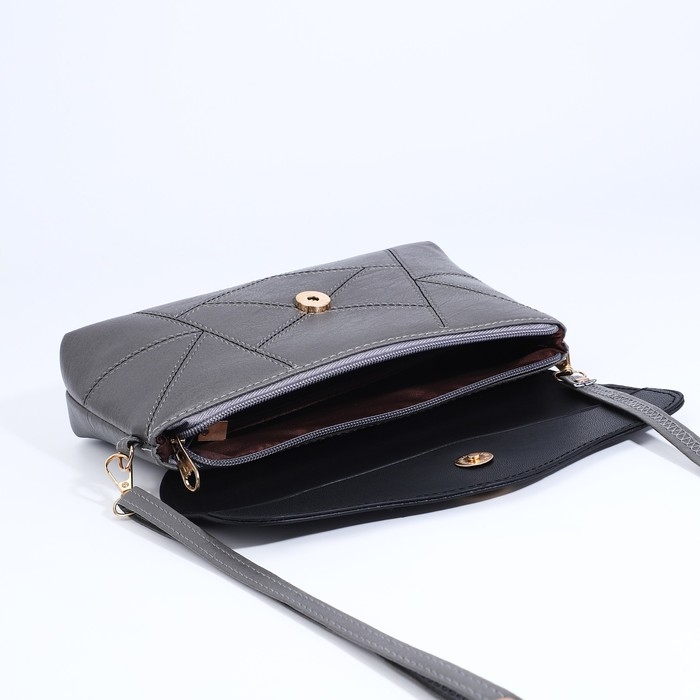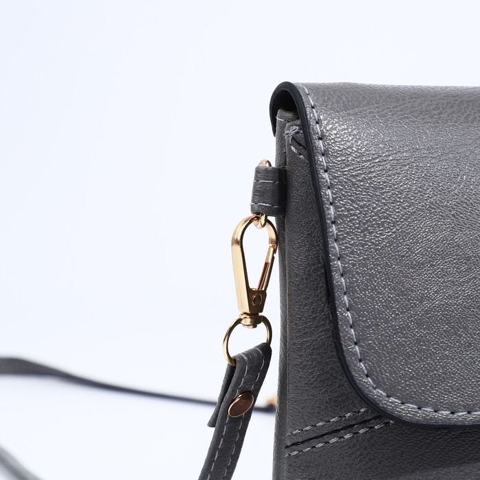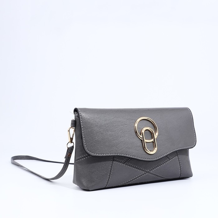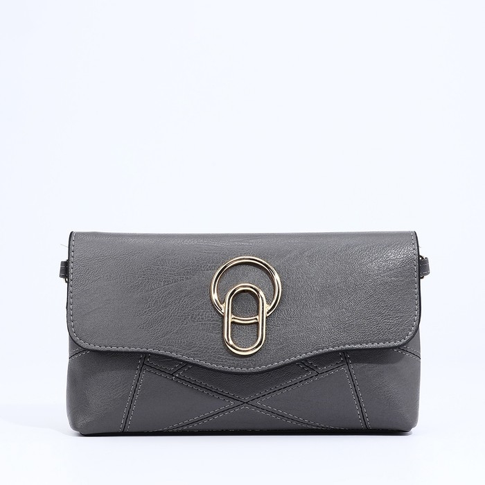 Сумка-клатч на магните, длинный ремень, цвет серый