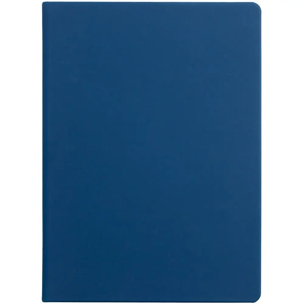 Ежедневник с твердой обложкой и тонированным обрезом, выполнен из материала Soft Touch, синий НН, дополнен ляссе в цвет обложки.