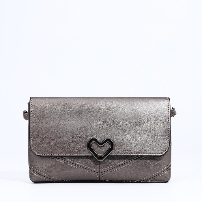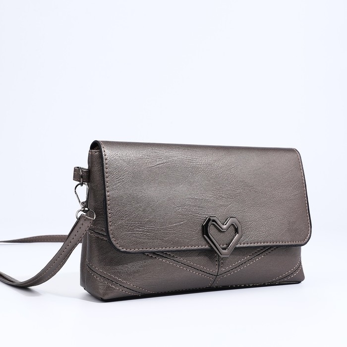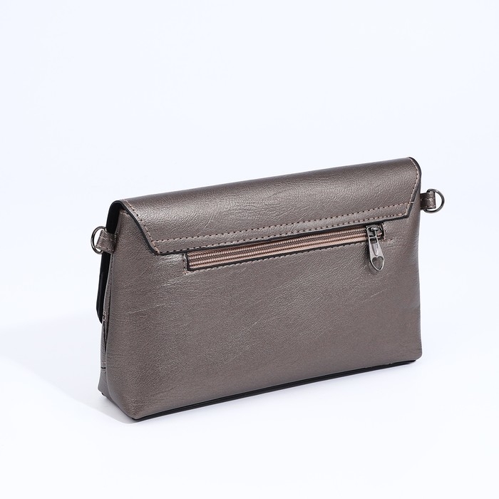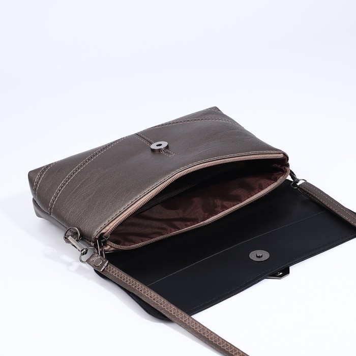 Сумка-клатч на магните, длинный ремень, цвет бронзовый