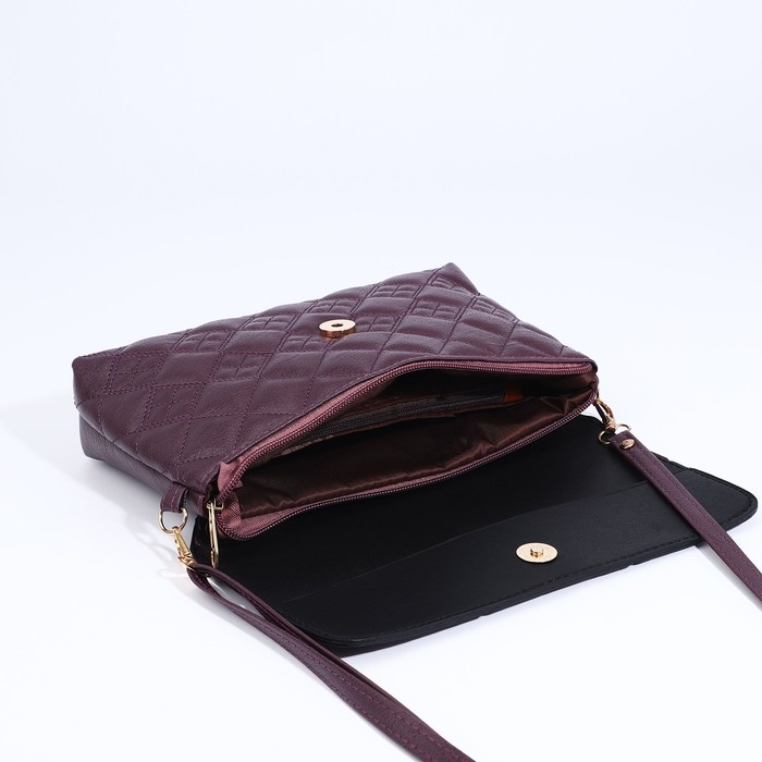 Сумка-клатч на магните, длинный ремень, цвет фиолетовый