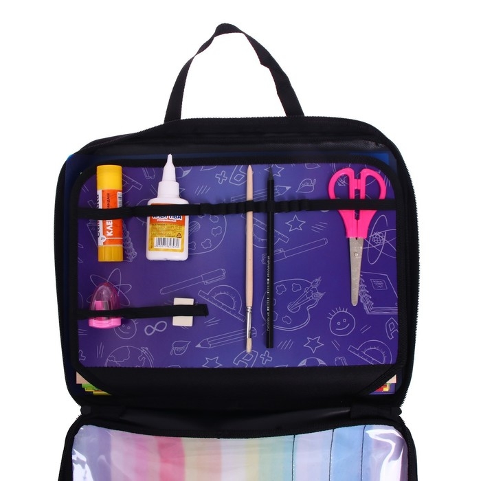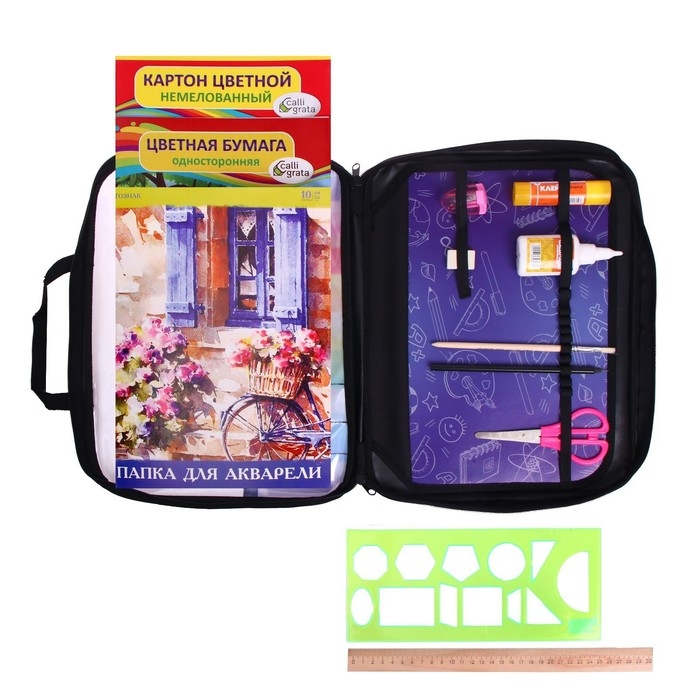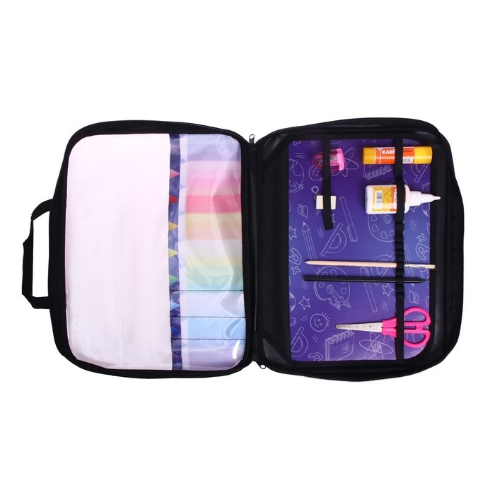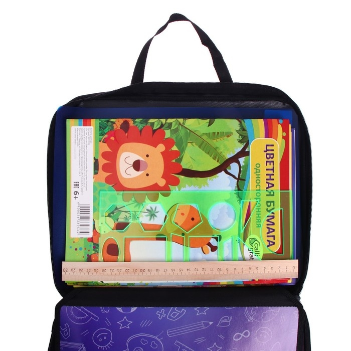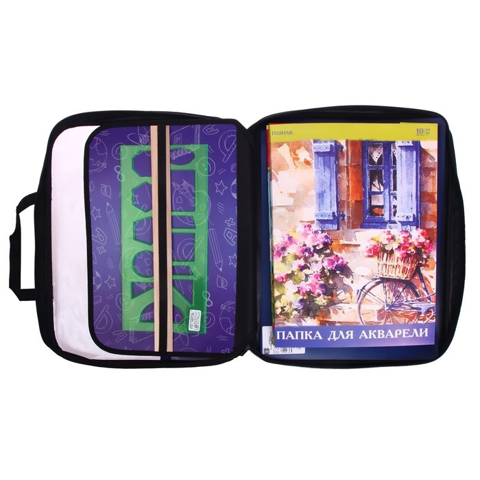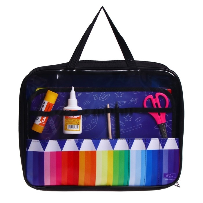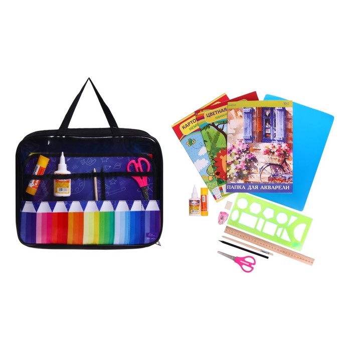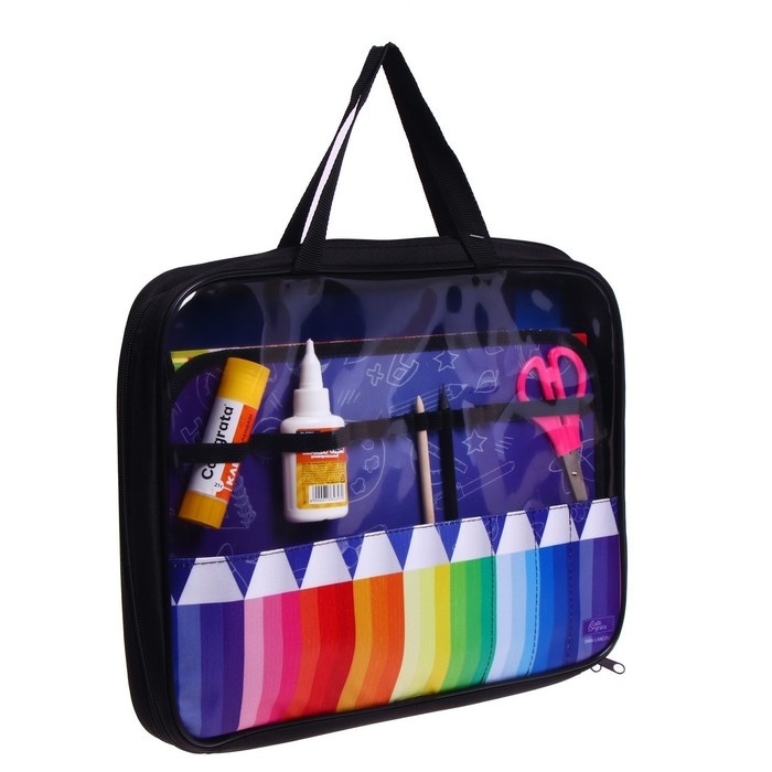 Папка для труда А4, 335 х 260 х 60 мм, с ручками, текстиль, ПВХ, с наполнением 13 предметов, Calligrata, ПТР-111, "Карандаши"