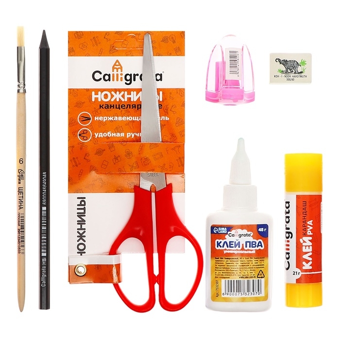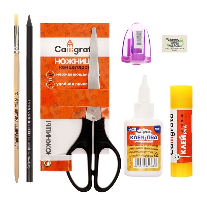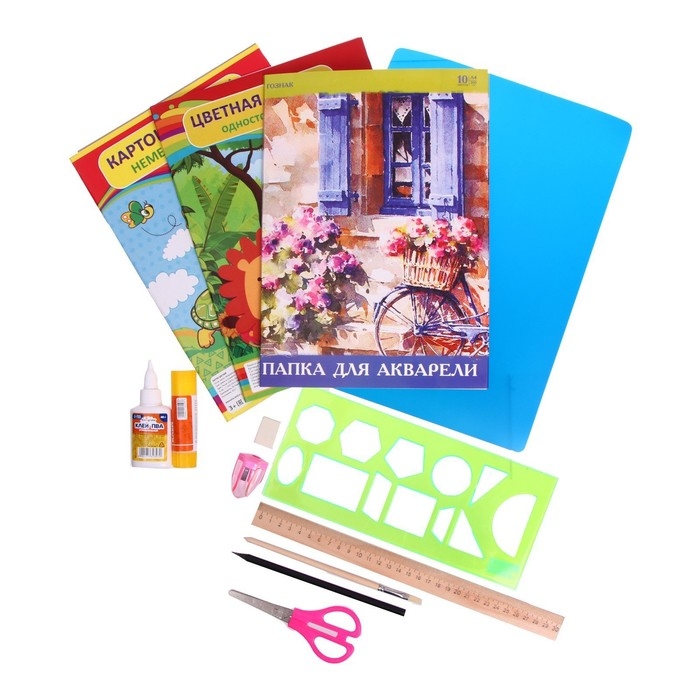 Карандаши, Клей, Линейка, Ножницы, Цветной картон