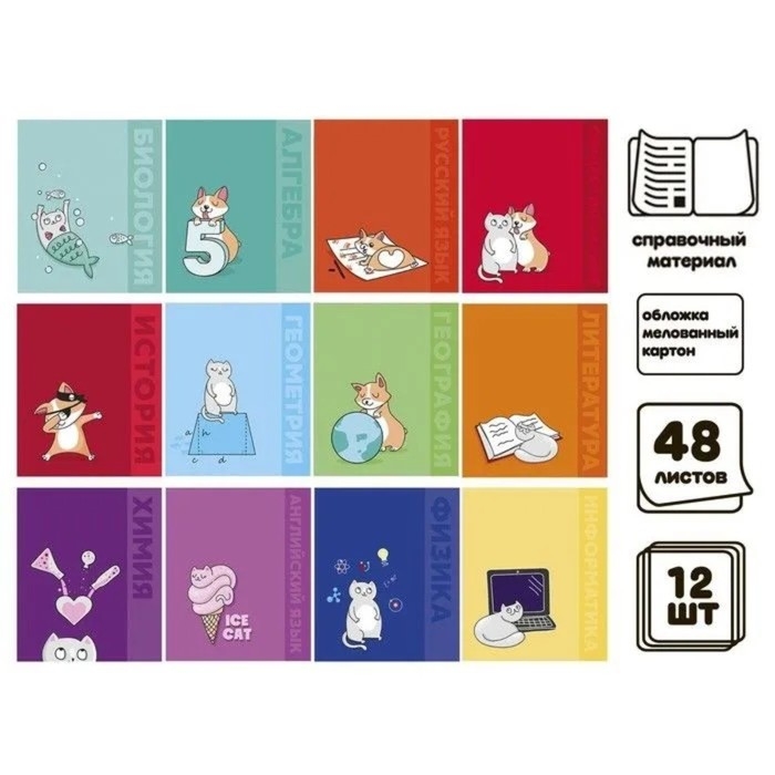Комплект предметных тетрадей Calligrata TOP "Животные", 48 листов, 12 предметов, со справочным материалом, обложка мелованный картон, матовая ламинация, выборочный УФ-лак, блок офсет