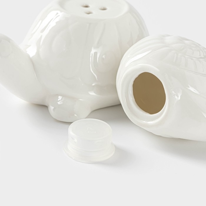 Набор для специй на деревянной подставке BellaTenero «Черепаха и улитка», 2 предмета: солонка 25 мл, перечница 30 мл, цвет белый