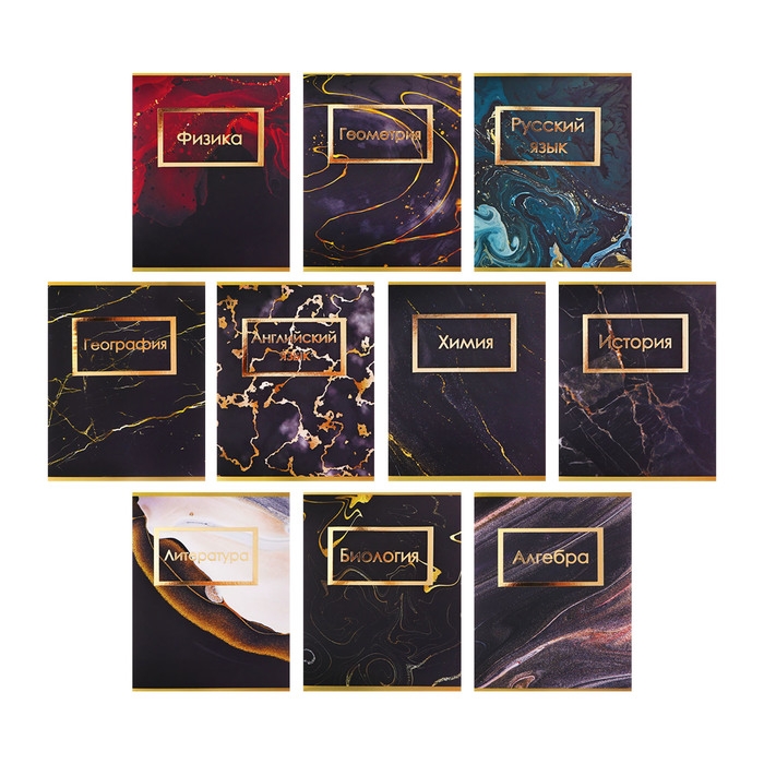 Комплект предметных тетрадей Calligata TOP "Мрамор темный", 48 листов, 10 предметов, со справочным материалом, обложка мелованный картон, покрытие Softт-touch с тиснением золотой фольгой, блок офсет