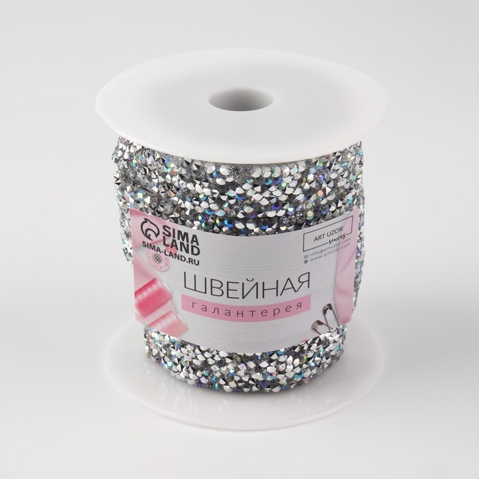Стразы термоклеевые, ширина - 15 мм, 4,5 ± 0,5 м, цвет серебряный