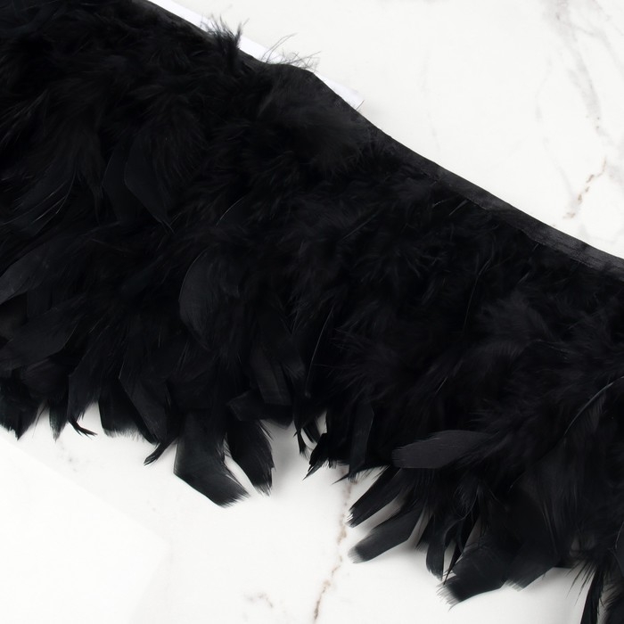 Тесьма с перьями индюка, 13-17 см, 5 ± 0,5 м, цвет чёрный