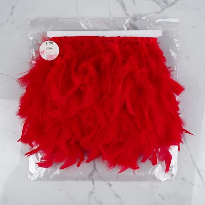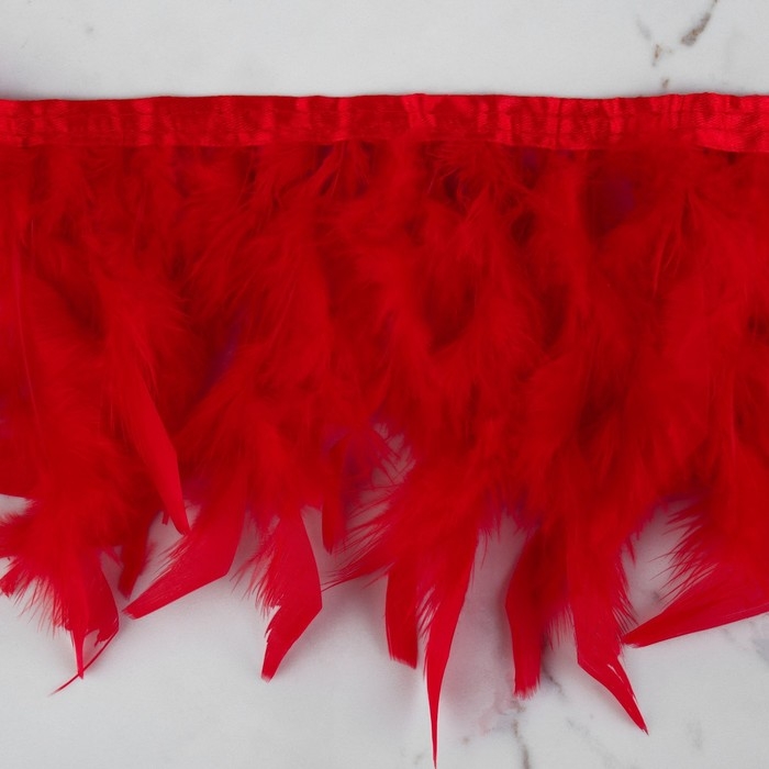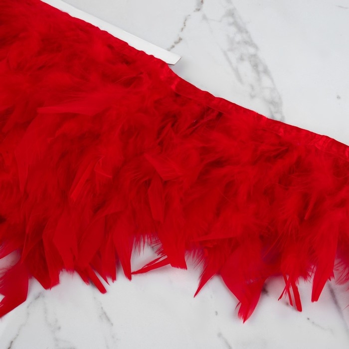 Тесьма с перьями индюка, 13-17 см, 5 ± 0,5 м, цвет красный