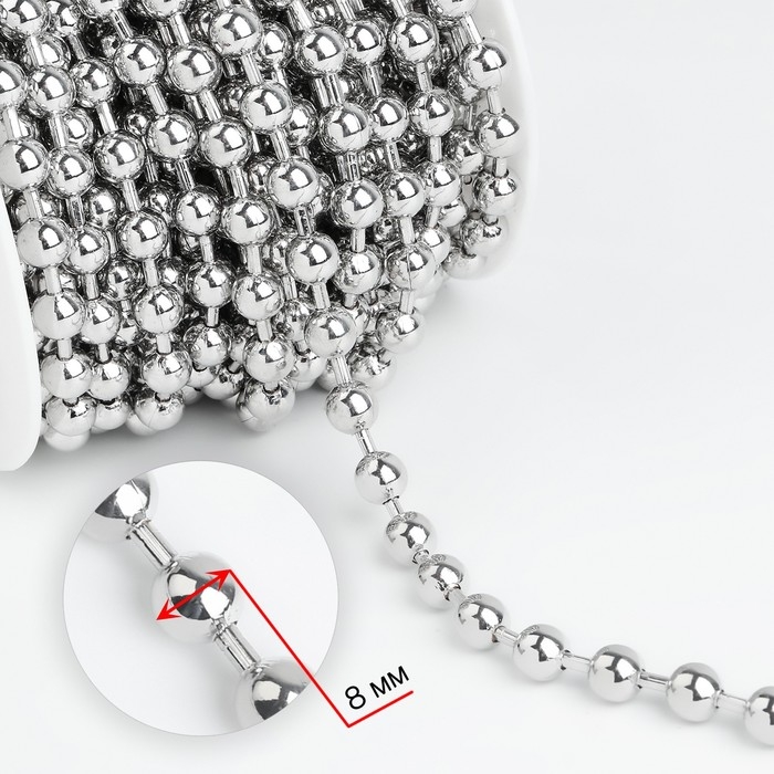 Цепочка для сумки, железная, d = 8 мм, 10 ± 0,5 м, цвет серебряный
