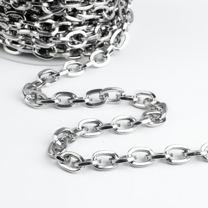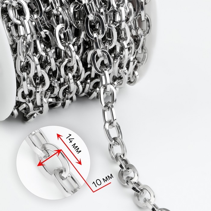 Цепочка для сумки, 14 × 10 мм, 10 ± 0,5 м, цвет серебряный