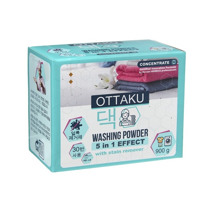 Особенность корейского стирального порошка OTTAKU 5в1, 900 гр, заключается в том, что он концентрированный, поэтому средства хватит до 4,5 раз дольше (по сравнению с обычным порошком, дозировка на 1 стирку = 150 грамм).