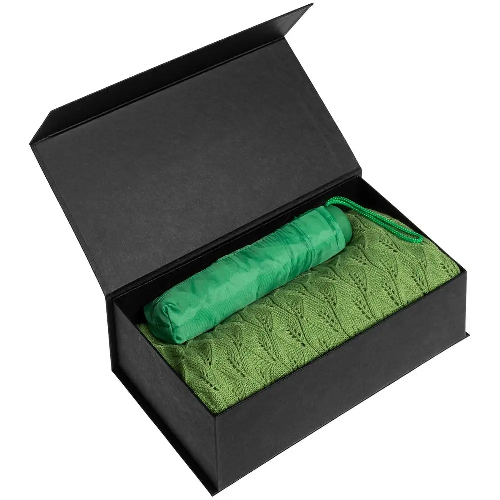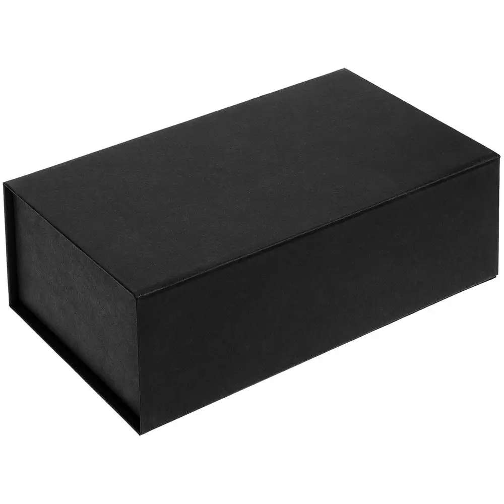 Коробка изготовлена из переплетного картона, кашированного гладкой дизайнерской бумагой Magic, с крышкой на магните.