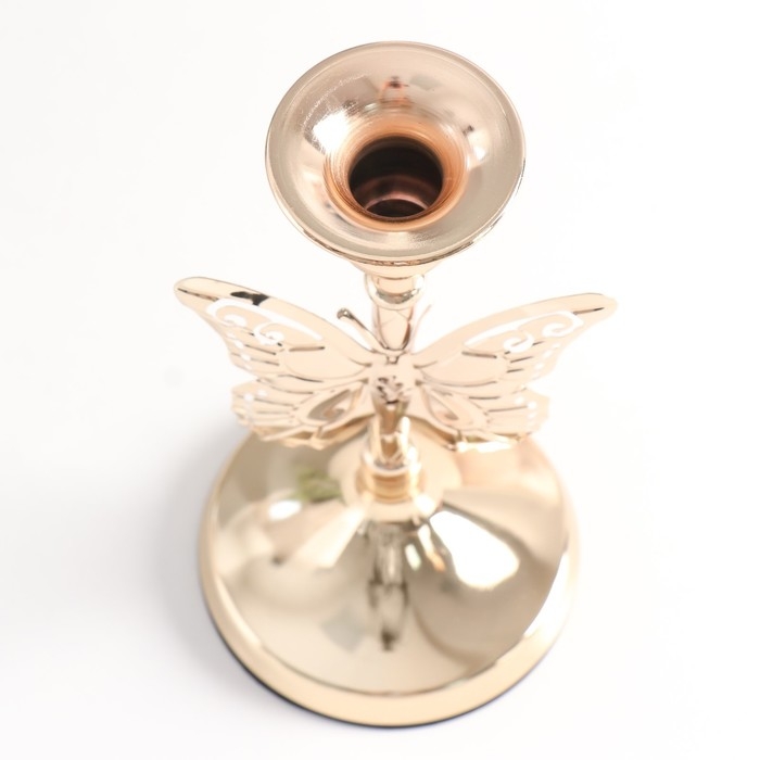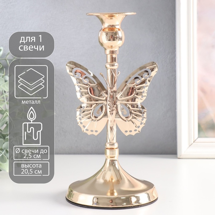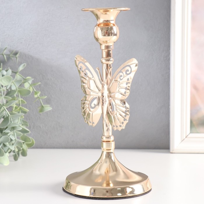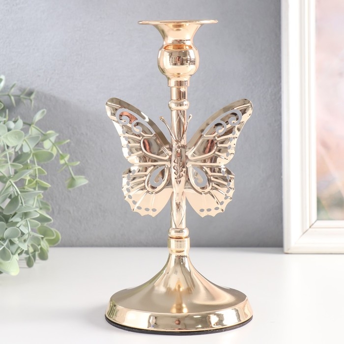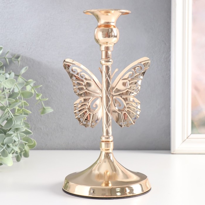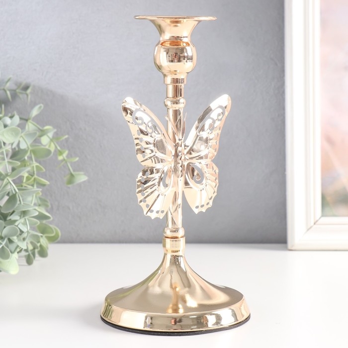 Подсвечник металл на 1 свечу "Ажурная бабочка" d-2,5 см золото 11х11х20,5 см
