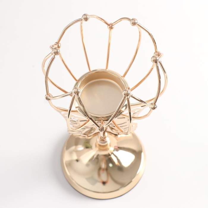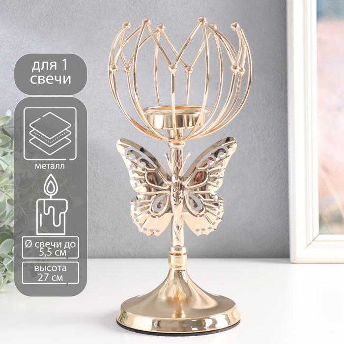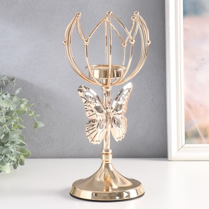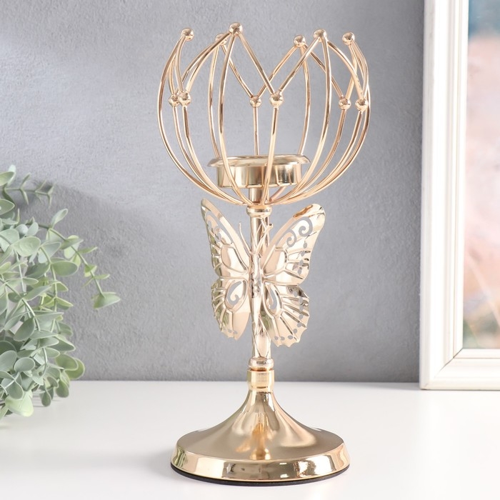 Подсвечник металл на 1 свечу "Бабочка и геометрическая лилия" d-5,5 см золото 11х11х27 см