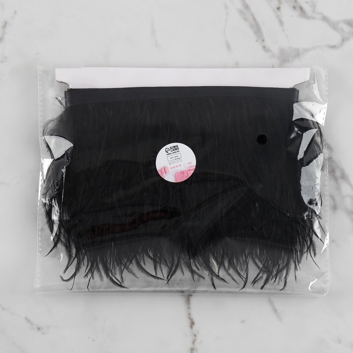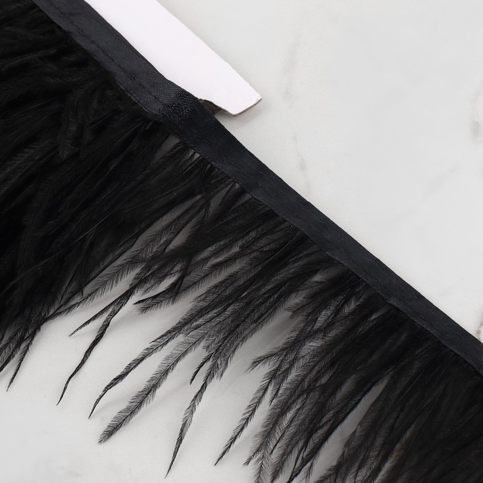 Тесьма с перьями страуса, 8-10 см, 5 ± 0,5 м, цвет чёрный