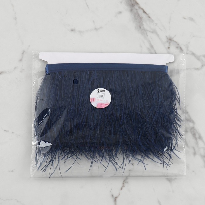 Тесьма с перьями страуса, 8-10 см, 5 ± 0,5 м, цвет тёмно-синий