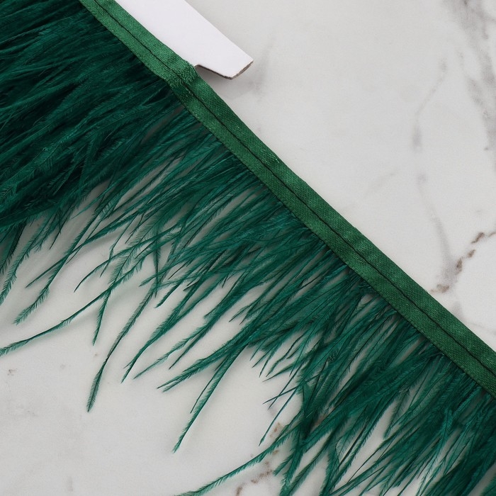 Тесьма с перьями страуса, 8-10 см, 5 ± 0,5 м, цвет изумрудный