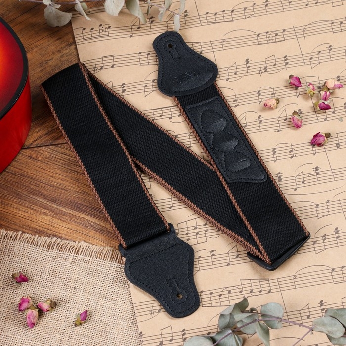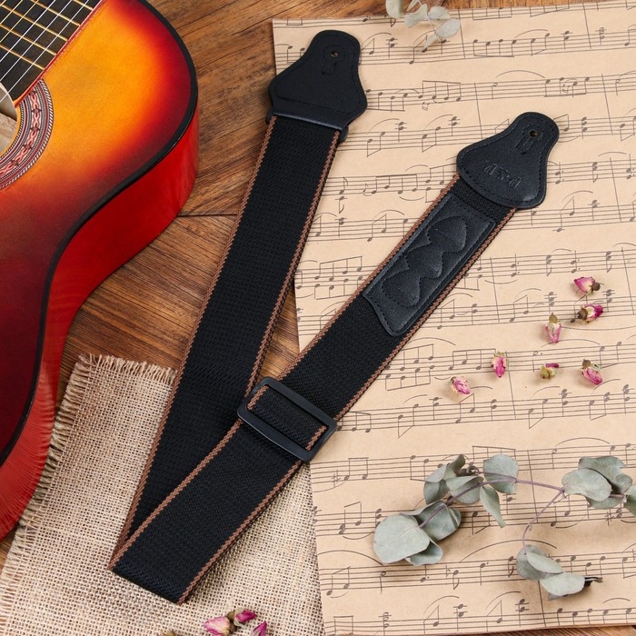 Ремень для гитары Music Life, черный с кармашком для медиаторов, 90-145 см, ширина 5 см