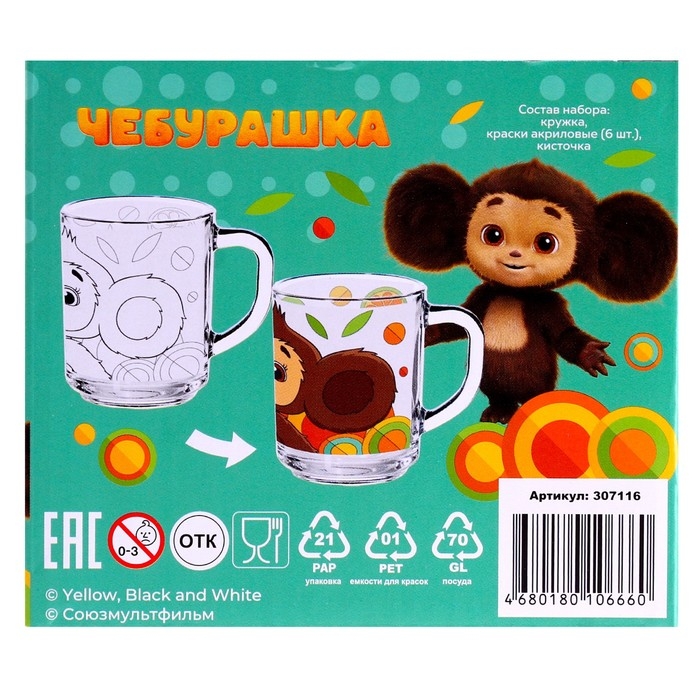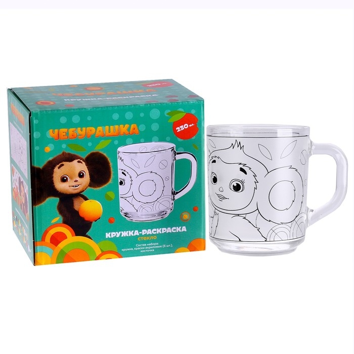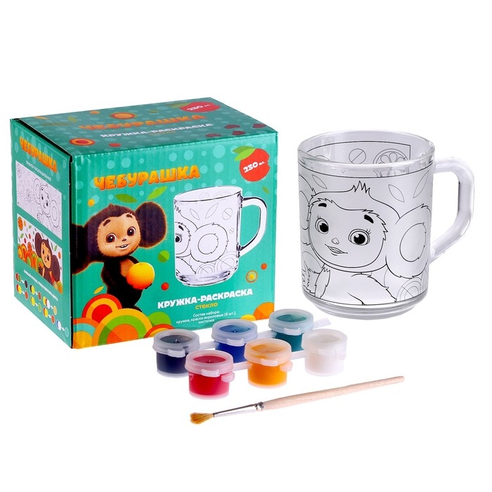 Кружка 230 мл, в наборе с красками и кисточкой «Чебурашка», стекло