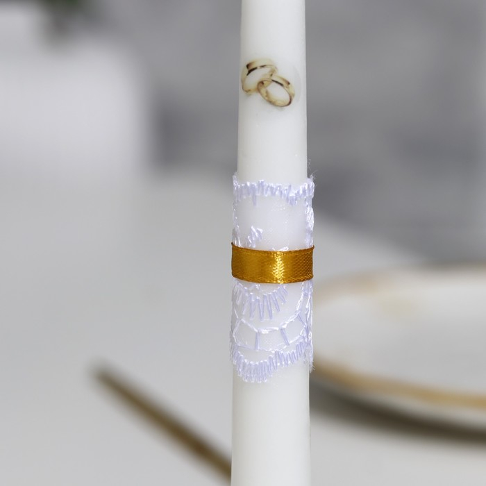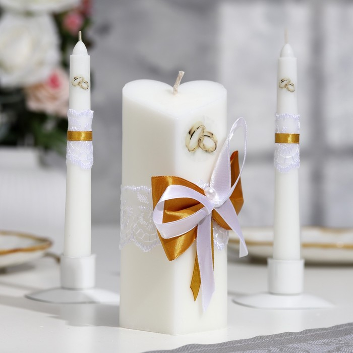 Набор свечей "Кружевной с бантиком" золотой: домашний очаг 6,8х15см, родительские 1,8х17,5см