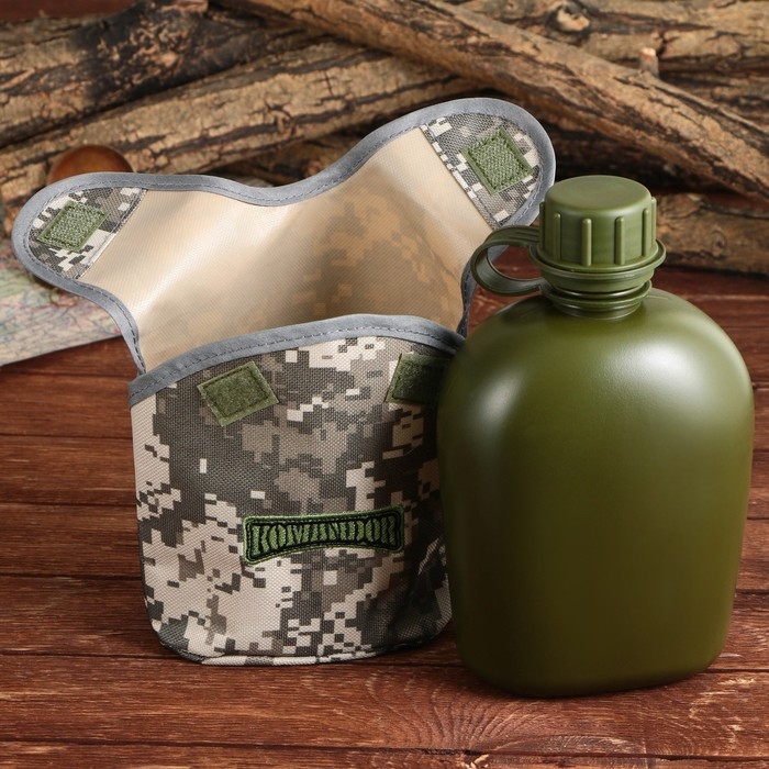 Фляга «Командор», пластик 1 л, камуфляж серый