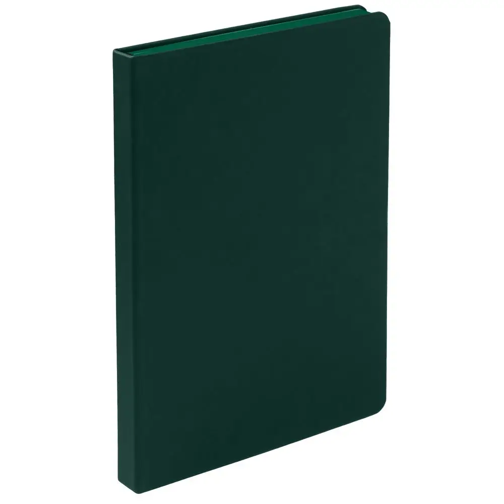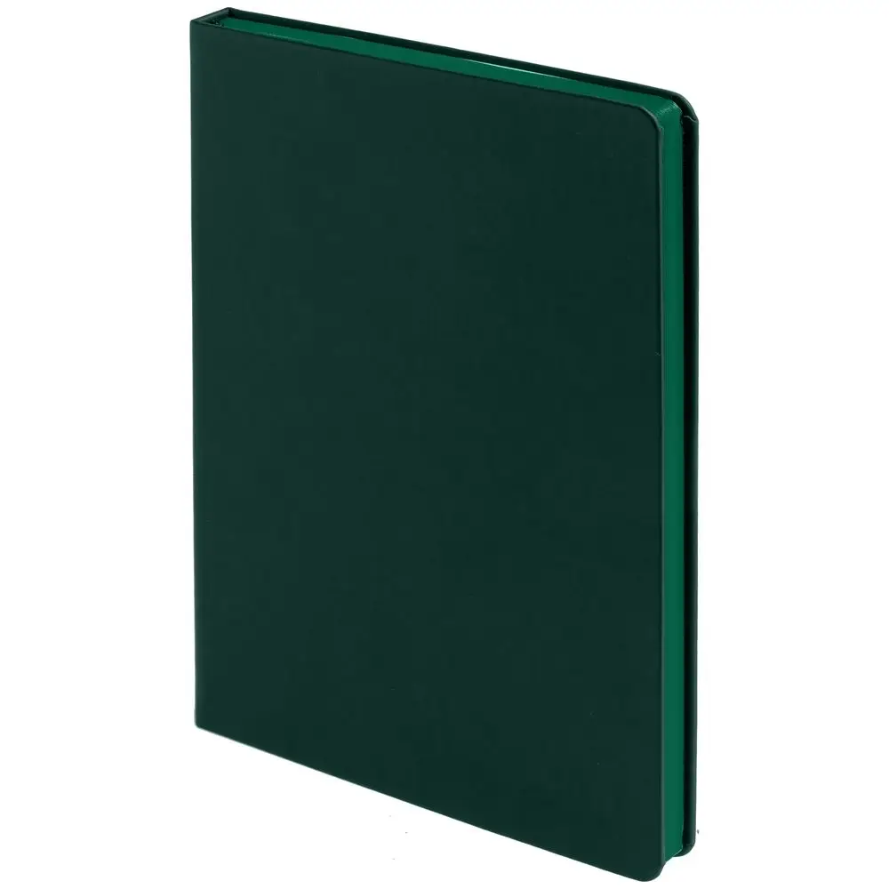Ежедневник с твердой обложкой и тонированным обрезом, выполнен из материала Soft Touch, зеленый FF, дополнен ляссе в цвет обложки.