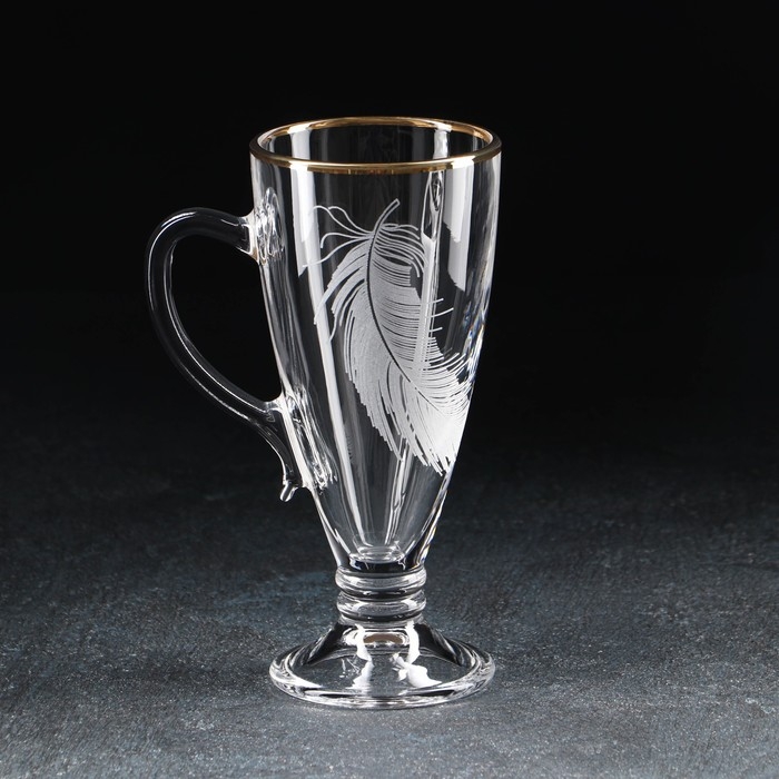 Кружка «Перо» - это грациозный и стильный аксессуар, который привлекает внимание своей уникальной формой и оригинальным дизайном. Кружка выполнена из прочного стекла высокого качества, которое не только выглядит элегантно, но и обеспечивает долговечность и надежность изделия. Особенностью данной кружки является нежный и эстетичный рисунок пера, а обрамленные золотом края кружки добавляют роскоши и эффектности.