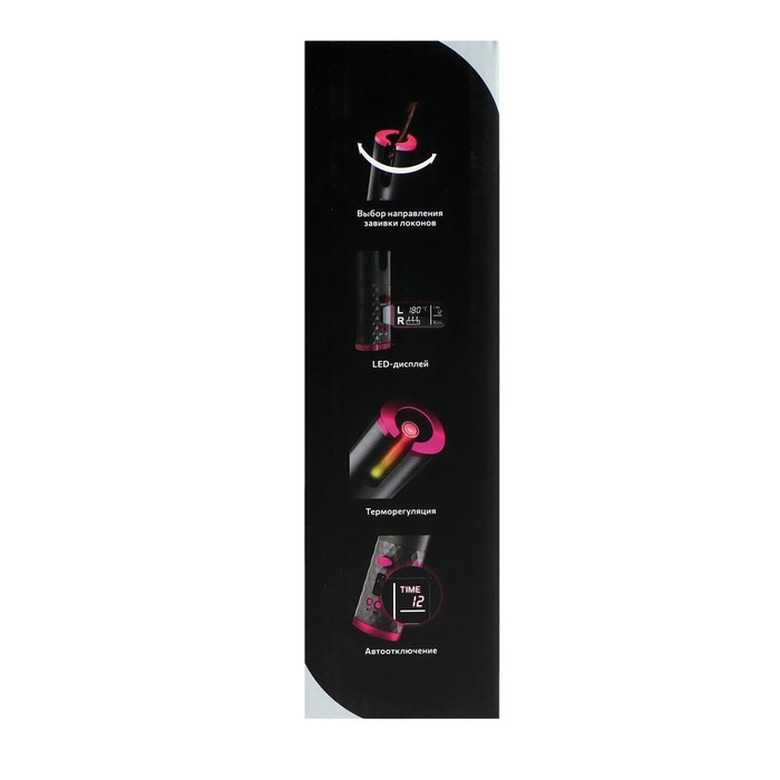 Плойка автоматически завьёт ваши волосы. Вам лишь нужно настроить работу устройства: регулируйте направление и время завивки, а также температуру нагрева от 150 до 200°. Для удобства на корпусе расположены дисплей и панель управления.