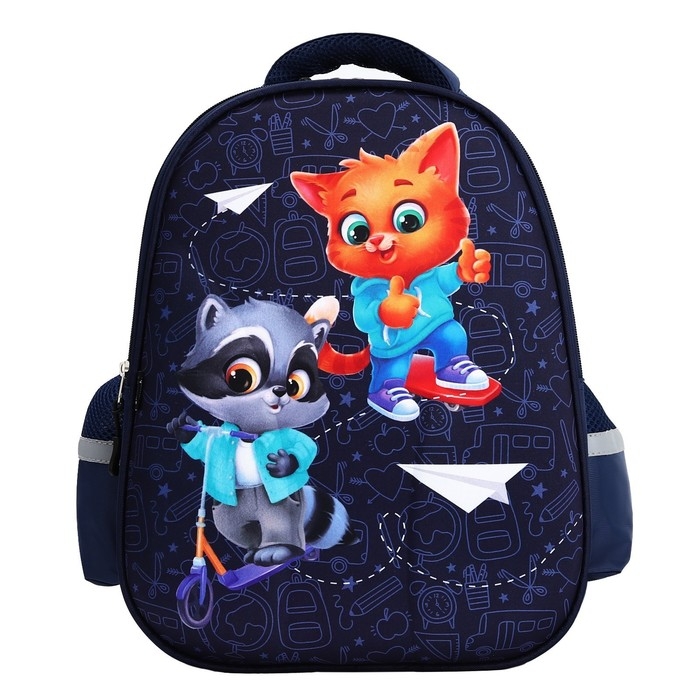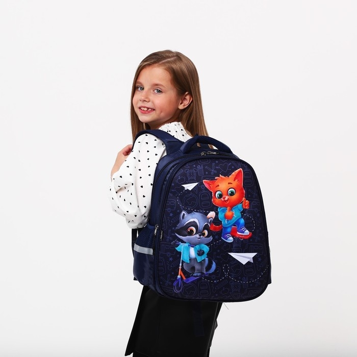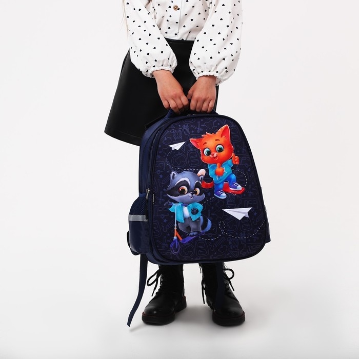 Рюкзак школьный каркасный 39х30х14 см «1 сентября: Енотик и лисёнок»