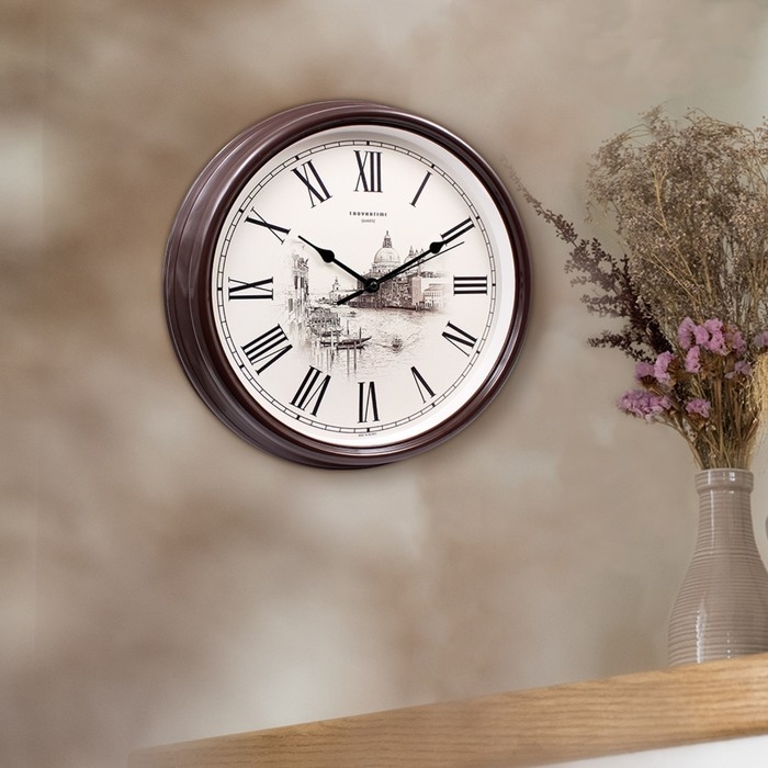 Часы настенные, интерьерные "Город", d-31 см, бесшумные
