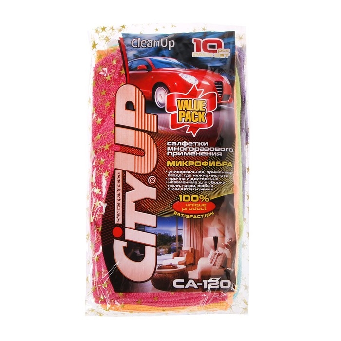 Салфетки микрофибра City-UP 30 х 30см, СА-120, набор 10 шт