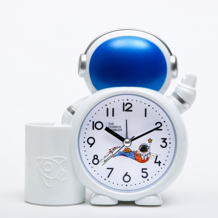 Часы - будильник настольные "Космонавт" с органайзером детские, 14 х 14.5 см, АА