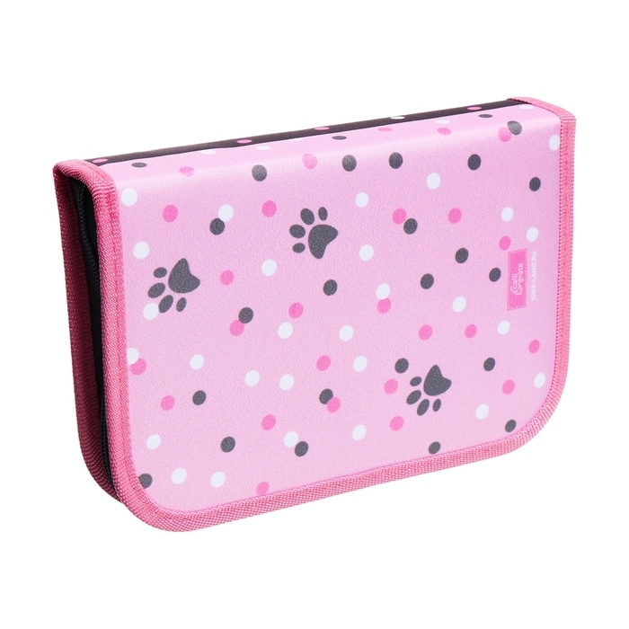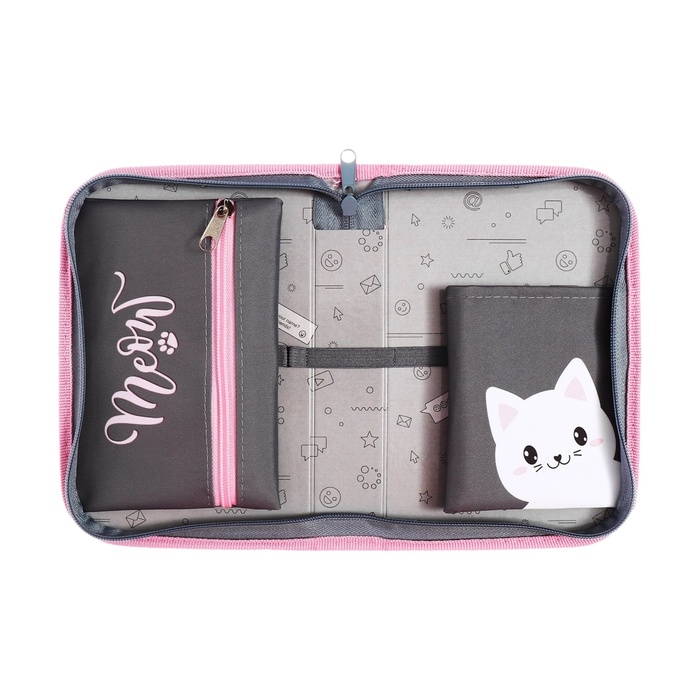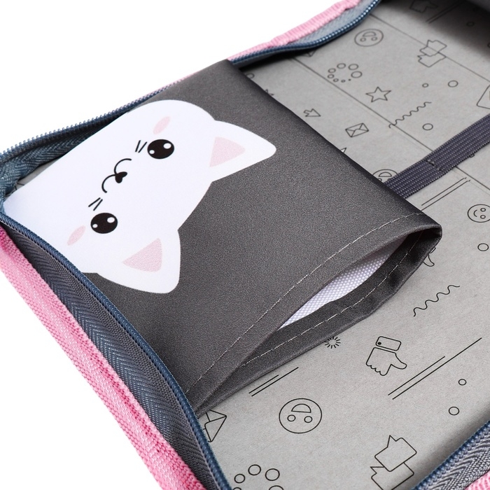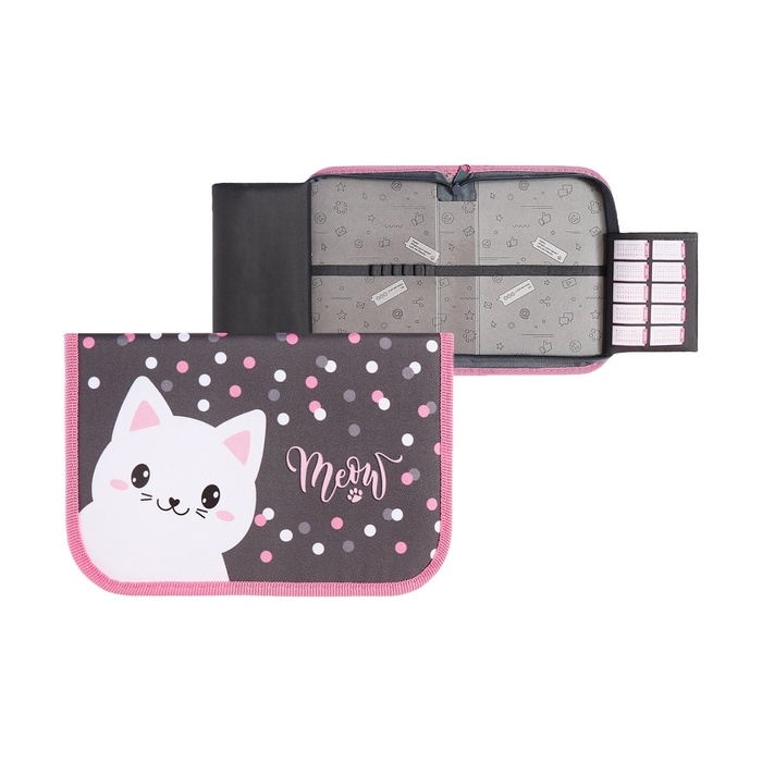 Пенал 1 секция 140 х 210 х 40 мм, откидной карман и косметичка, тканевый, Calligrata TOP Content "Котик"