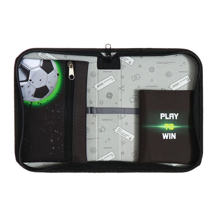 Пенал 1 секция 140 х 210 х 40 мм, откидной карман и косметичка, тканевый, Calligrata TOP Content "Футбол"