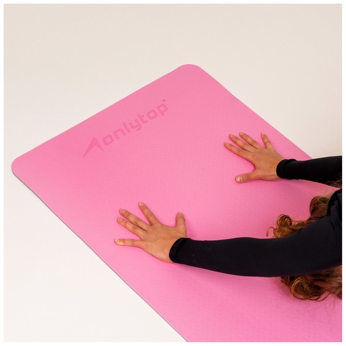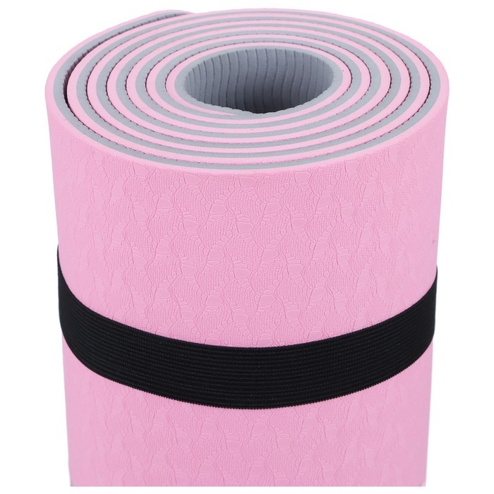 Коврик для фитнеса и йоги ONLYTOP, 183х61х0,6 см, цвет серый/розовый